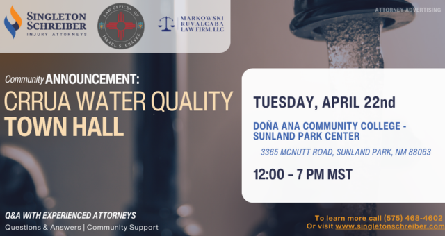 Join Singleton Schreiber's local attorneys, in collaboration with the Law Offices of Israel Chávez LLC and Markowski Ruvalcaba Law Firm LLC, for an in-person Townhall at the Doña Ana Community College - Sunland Park Center located at 3365 McNutt Rd, Sunland Park, NM 88063 on Tuesday, April 22nd, 2025, from 12:00 PM - 7:00 PM, MST.