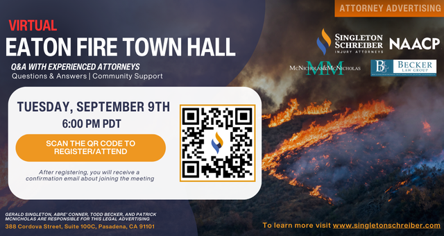 Join Singleton Schreiber's local attorneys, in partnership with the NAACP, for a virtual Town Hall this Tuesday, September 9th, 2025, at 6:00 PM PDT.