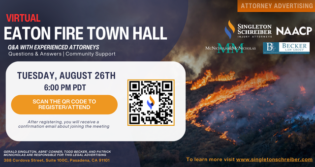 Join Singleton Schreiber's local attorneys, in partnership with the NAACP, for a virtual Town Hall this Tuesday, August 26th, 2025, at 6:00 PM PDT.