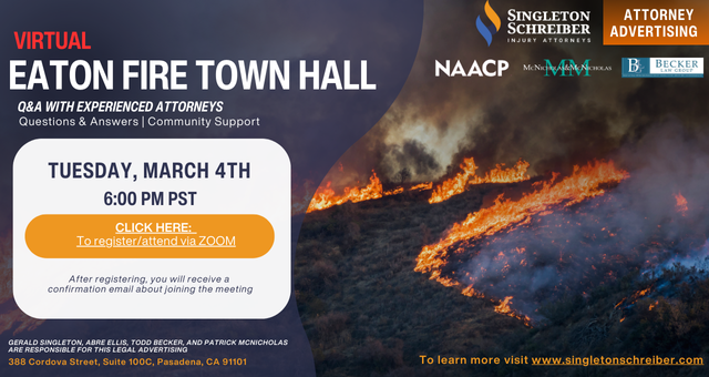 Join Singleton Schreiber's local attorneys, in partnership with the NAACP, for a virtual Townhall this Tuesday, March 4th, 2025, at 6:00 PM PST.