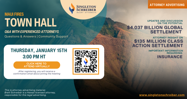 Join Singleton Schreiber in a virtual Maui Town Hall on Thursday, January 15th, 2026, at 3:00 PM HT.