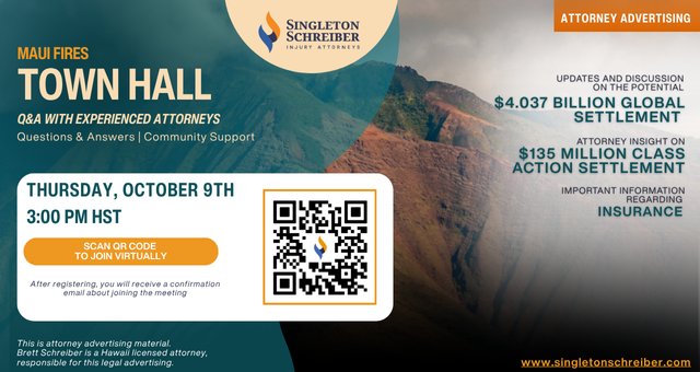 Join Singleton Schreiber in a virtual Maui Town Hall on Thursday, October 9th, 2025, at 3:00 PM HST.