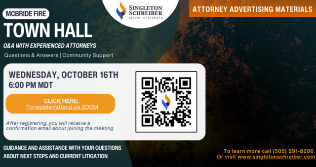 • An exclusive opportunity to ask key questions and have your concerns about the McBride Fire addressed by experienced attorneys. We’ll be discussing community updates.
