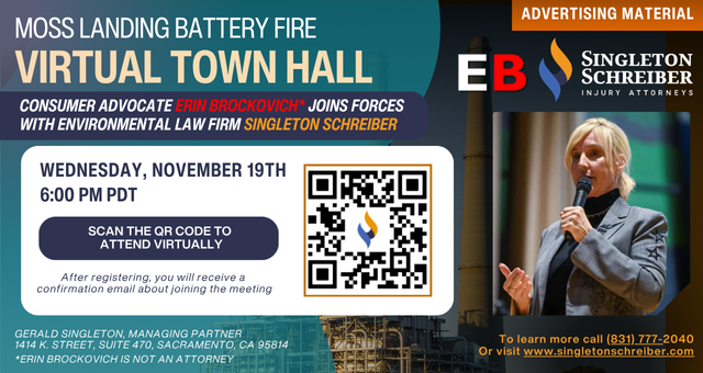 Join Singleton Schreiber and consumer advocate Erin Brockovich at a Virtual Town Hall on Wednesday, November 19th, 2025, at 6:00 PM, PST.