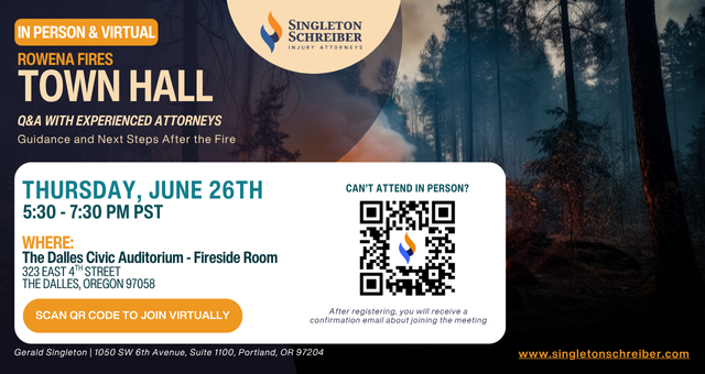 Join Singleton Schreiber at an In-Person Town Hall on Thursday, June 26th, 2025, at 5:30 PM, PST at The Dalles Civic Auditorium - Fireside Room 323 EAST 4 STREET THE DALLES, OREGON 97058