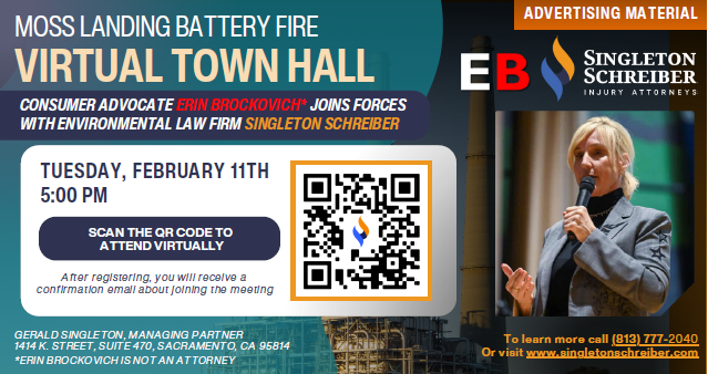 Knut Johnson, Senior Counsel of Singleton Schreiber, was recently featured in a Lookout Santa Cruz article, titled "Moss Landing residents file lawsuit against Vistra weeks after battery facility fire," discussing the lawsuit filed against Vistra Corp. over the January 16 fire at the Moss Landing battery storage facility. The lawsuit, backed by renowned environmental advocate Erin Brockovich, demands an investigation into the fire’s cause, compensation for residents suffering from health issues and property damage, and stricter safety regulations for battery storage facilities.